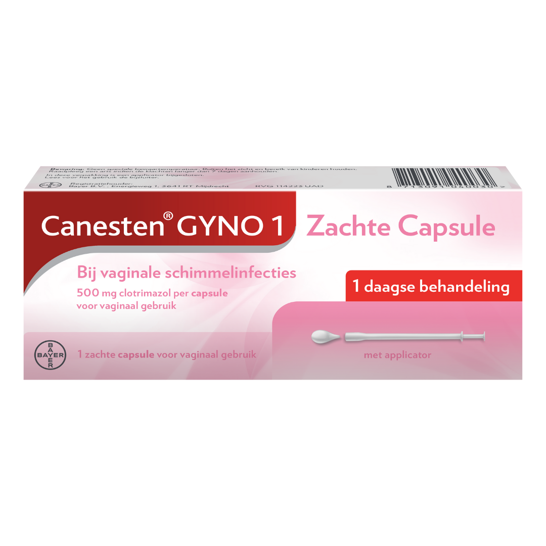 De zachte capsule van Canesten Gyno is makkelijk in te brengen, vormt zich naar je lichaam en zorgt voor een comfortabele, lokale ééndaagse behandeling voor (inwendig) vaginaal gebruik.
